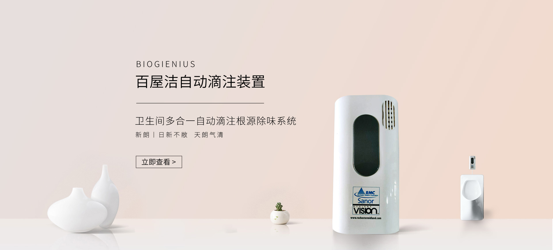 新朗環(huán)境自2015年起與美國具百年歷史的跨國企業(yè)RMC(Rochester Midland Corporation)合作, 進口 RMC用于機械制造、交通運輸、航天航空、石油化工、食品禽肉乳制品加工等工業(yè)生產(chǎn)制造行業(yè)的專業(yè)清洗、滅菌系列產(chǎn)品,以及酒店、CBD大廈、學校(包括幼稚園)、醫(yī)療機構、百貨商場、養(yǎng)殖業(yè)、餐飲業(yè)等商用行業(yè)清潔、消毒系列產(chǎn)品,還有專用于各個行業(yè)單位“廁所革命”的公共衛(wèi)生間根源除味第5代SANOR?衛(wèi)生間自動滴管系統(tǒng)、第6代百屋潔SIOGIENIUS?電子控制衛(wèi)生間自動滴注系統(tǒng)等系列產(chǎn)品項目。